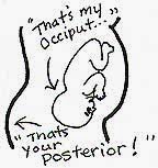 Some babies are on the mother’s right side, or along mother’s back, spine to spine. Especially so in the first time mother, being on the right or along the mother’s back can extend baby’s back causing extension of the fetal spine. This straight fetal back aims the top of baby’s head right into the mother’s pubic bone. Engagement is delayed until the forehead turns to fit the brim or the baby flexes just enough to enter the bony pelvis.
